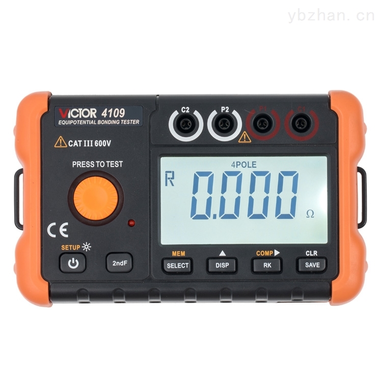 等电位连接电阻测试仪VICTOR 4109 采用直流激励、2极/4极法测量,适用于测量建筑物中的金属构件之间的等电位连接电阻、各种电气设备与地网地极间的连接导体的电阻,也可以测量开关、插座触点的接触电阻以及其它低值电阻。