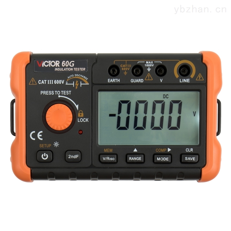 VICTOR 60G 绝缘电阻测试仪是一台智能微型绝缘测试仪器,整机电路设计采用微机技术设计为核心,以大规模集成电路和数字电路相组合,配有强大的测量和数据处理软件,完成绝缘电阻、电压等参数测量,性能稳定,操作简便。对于适用于现场电力设备以及供电线路的测量和检修的用户,本仪器是您的理想的选择。